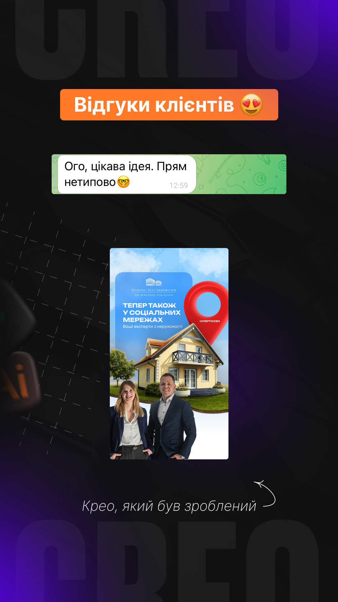 Вдохновляйтесь нашими проектами и убедитесь: мы умеем создавать креативы для рекламы, которые приносят реальный результат.
